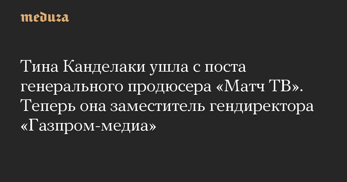 Тина Канделаки ушла с поста генерального продюсера «Матч ТВ». Теперь она заместитель гендиректора «Газпром-медиа»