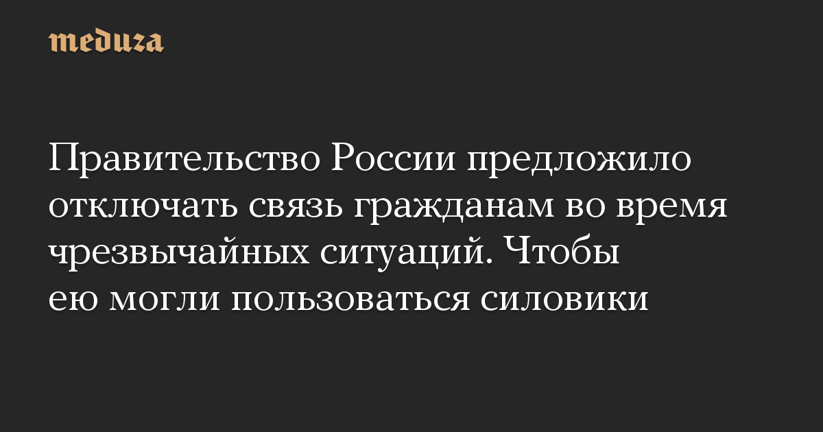 Правительство России предложило отключать связь гражданам во время чрезвычайных ситуаций. Чтобы ею могли пользоваться силовики