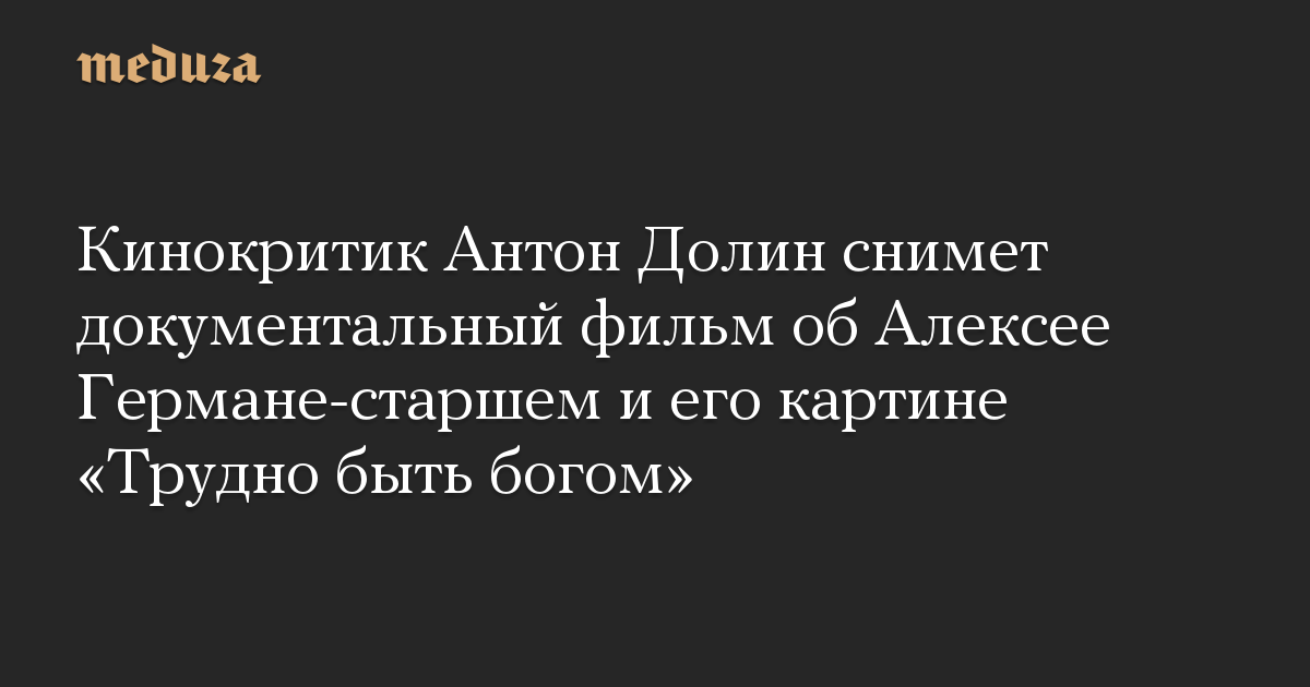 Главный редактор журнала «Искусство кино», кинокритик «Медузы» Антон Долин снимет дебютный документальный фильм об Алексее Германе-старшем и его картине «Трудно быть богом». Об этом сам Долин рассказал «Медузе».
