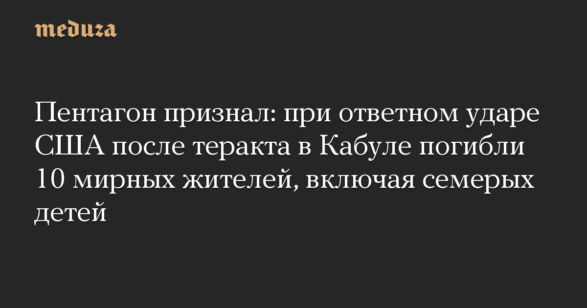 Пентагон признал: при ответном ударе США после теракта в Кабуле погибли 10 мирных жителей, включая семерых детей
