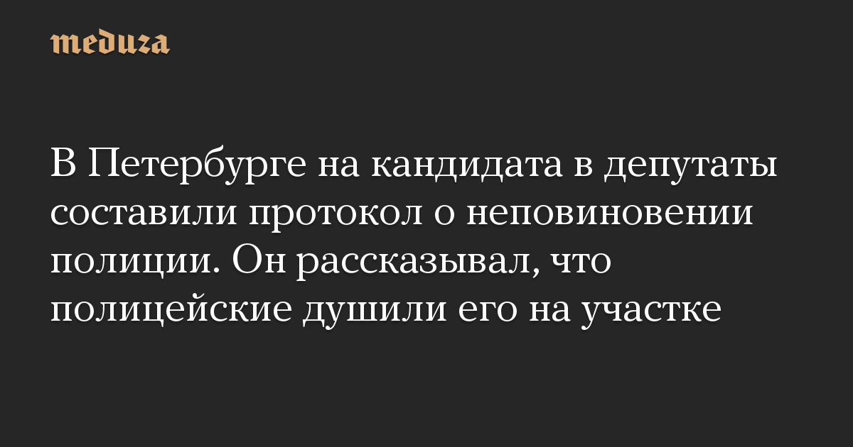 В Петербурге на кандидата в депутаты составили протокол о неповиновении полиции. Он рассказывал, что полицейские душили его на участке