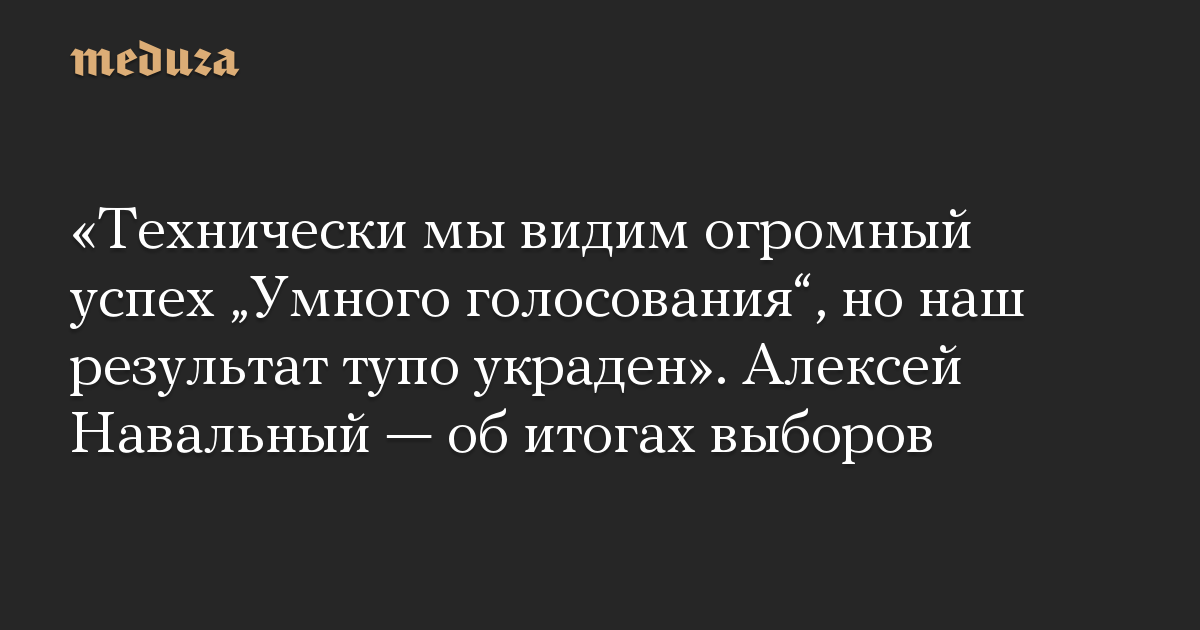 Технически мы видим огромный успех «Умного голосования». А в Москве и Питере так вообще триумф. <…> Но, по-честному, общий результат «победой» не назовешь. Наш результат тупо украден. Перерисовали самым примитивным образом.