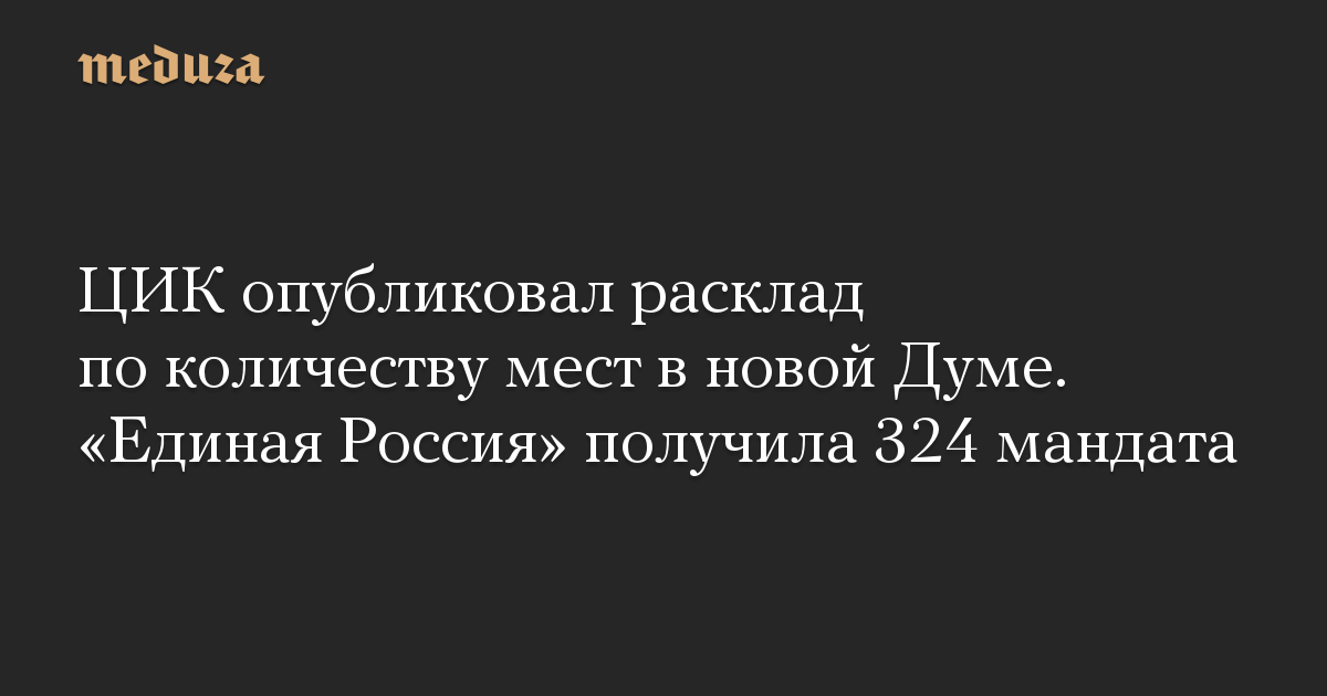 ЦИК опубликовал расклад по количеству мест в новой Думе. «Единая Россия» получила 324 мандата