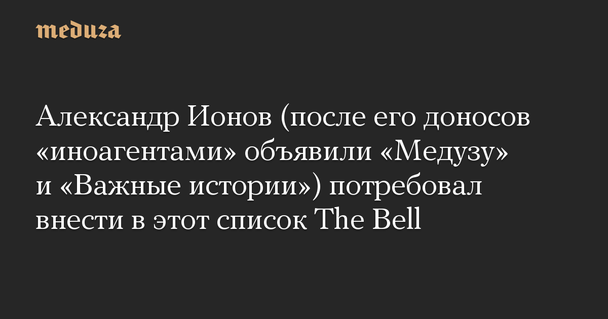 Александр Ионов (после его доносов «иноагентами» объявили «Медузу» и «Важные истории») потребовал внести в этот список The Bell