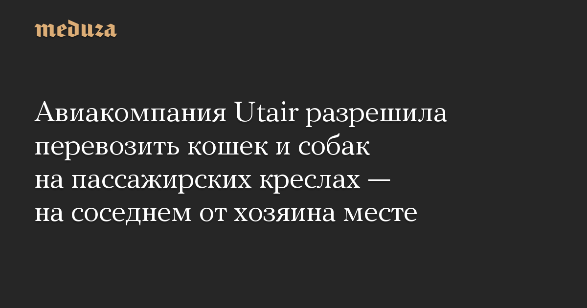 Авиакомпания Utair разрешила перевозить кошек и собак на пассажирских креслах — на соседнем от хозяина месте