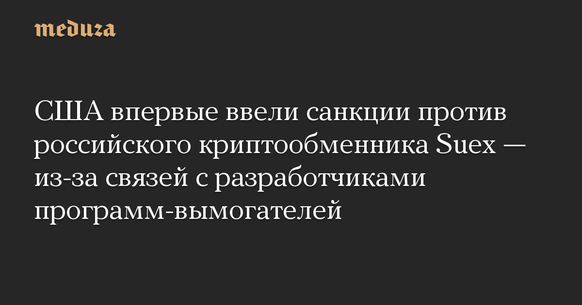 США впервые ввели санкции против российского криптообменника Suex — из-за связей с разработчиками программ-вымогателей