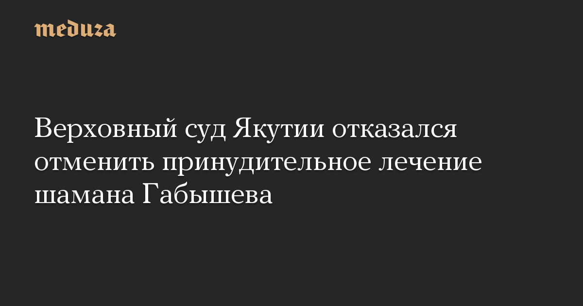 Верховный суд Якутии отклонил апелляционную жалобу якутского шамана Александра Габышева на решение Якутского городского суда, направившего его на принудительное лечение в психиатрический стационар специализированного типа с интенсивным наблюдением. Об этом «Медузе» сообщил адвокат шамана Алексей Прянишников.