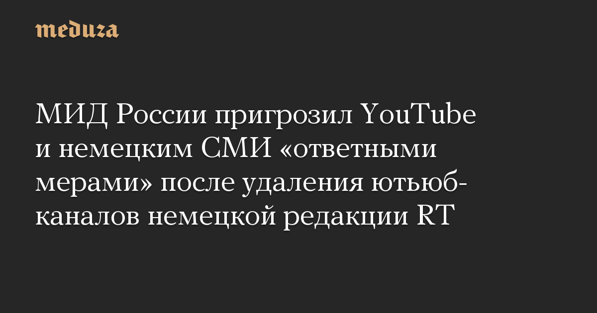 МИД России пригрозил YouTube и немецким СМИ «ответными мерами» после удаления ютьюб-каналов немецкой редакции RT