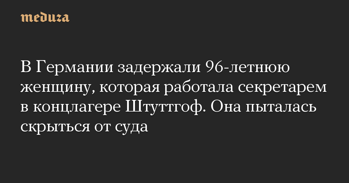 В Германии задержали 96-летнюю женщину, которая работала секретарем в концлагере Штуттгоф. Она пыталась скрыться от суда