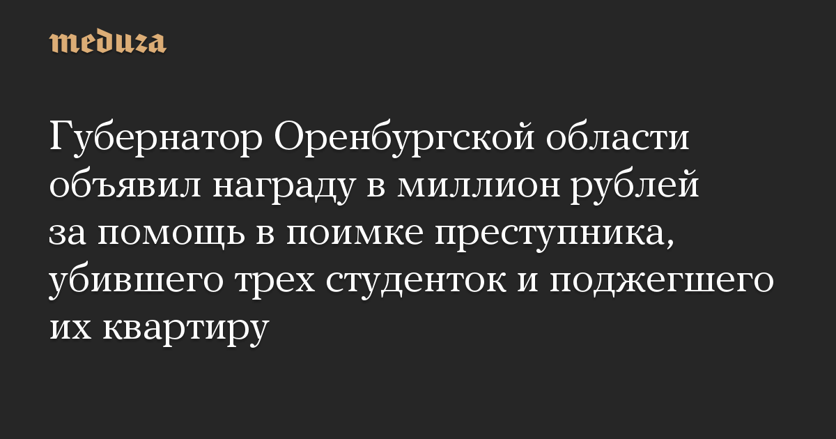 Губернатор Оренбургской области объявил награду в миллион рублей за помощь в поимке преступника, убившего трех студенток и поджегшего их квартиру
