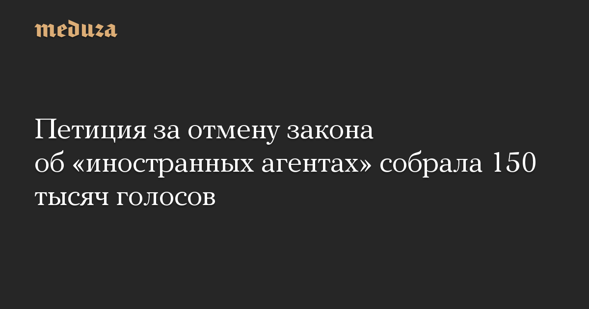 Петицию с требованием отмены норм российского законодательства об «иностранных агентах» подписали более 150 тысяч человек.