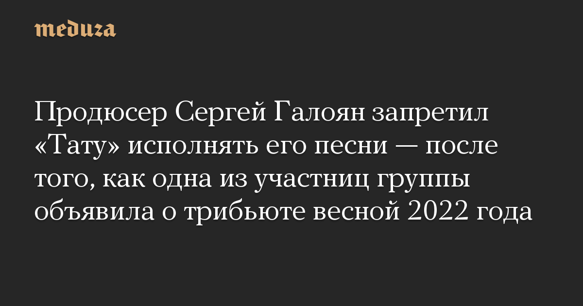 Продюсер Сергей Галоян запретил «Тату» исполнять его песни — после того, как одна из участниц группы объявила о трибьюте весной 2022 года