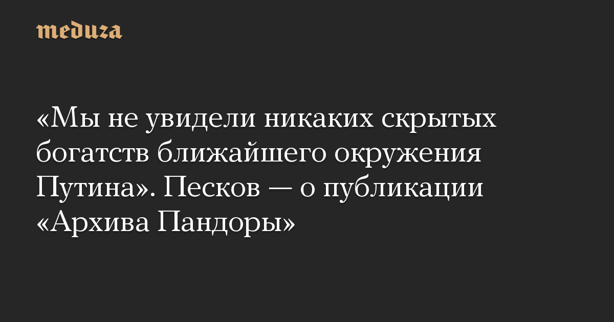 Пресс-секретарь президента РФ Дмитрий Песков заявил, что в Кремле «не увидели никаких скрытых богатств ближайшего окружения Путина» в публикациях «Архива Пандоры» — серии расследований об офшорах политиков и чиновников из разных стран, в том числе России.