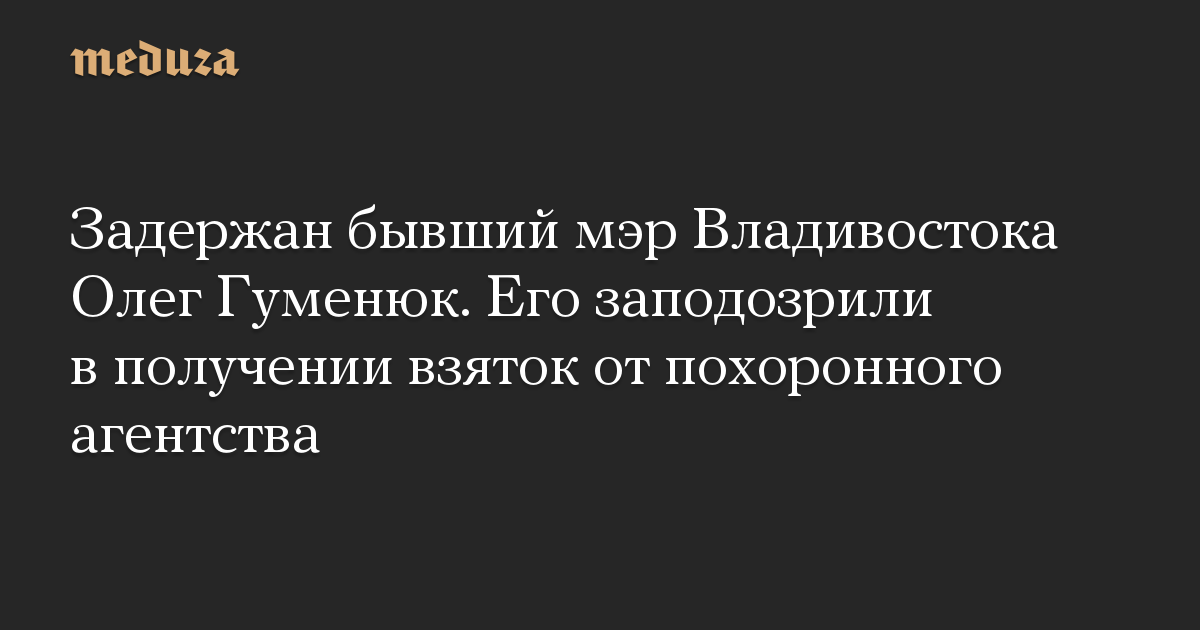 Задержан бывший мэр Владивостока Олег Гуменюк. Его заподозрили в получении взяток от похоронного агентства