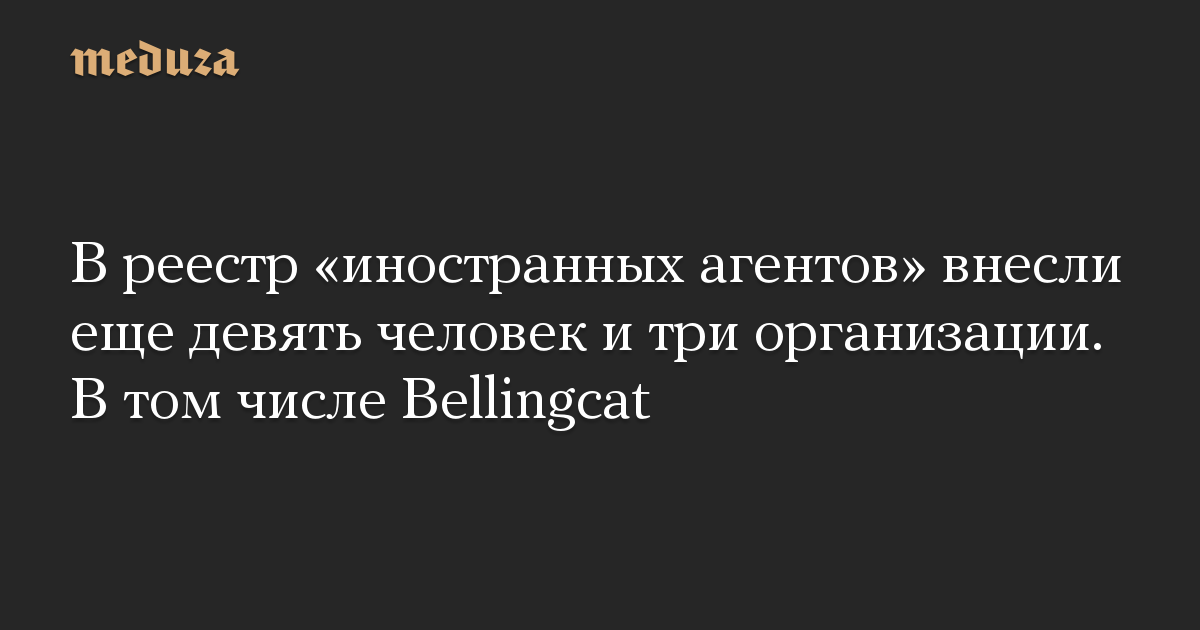 В российский реестр «СМИ — иностранных агентов» внесли еще девять человек и три организации, в том числе расследовательский проект Bellingcat.