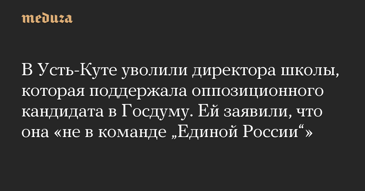В Усть-Куте уволили директора школы, которая поддержала оппозиционного кандидата в Госдуму. Ей заявили, что она «не в команде „Единой России“»