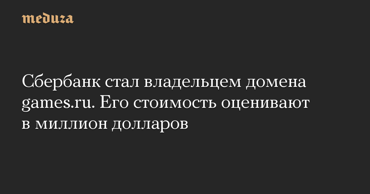 Сбербанк стал владельцем домена games.ru. Его стоимость оценивают в миллион долларов