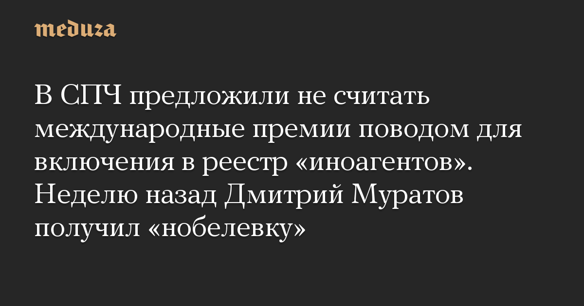 В СПЧ предложили не считать международные премии поводом для включения в реестр «иноагентов». Неделю назад Дмитрий Муратов получил «нобелевку»