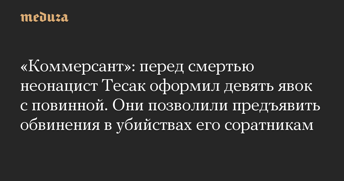 «Коммерсант»: перед смертью неонацист Тесак оформил девять явок с повинной. Они позволили предъявить обвинения в убийствах его соратникам