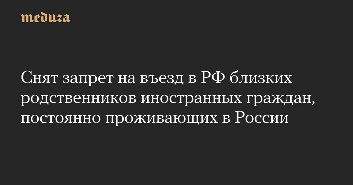 Снят запрет на въезд в РФ близких родственников иностранных граждан, постоянно проживающих в России
