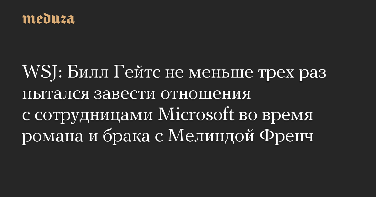 WSJ: Билл Гейтс не меньше трех раз пытался завести отношения с сотрудницами Microsoft во время романа и брака с Мелиндой Френч