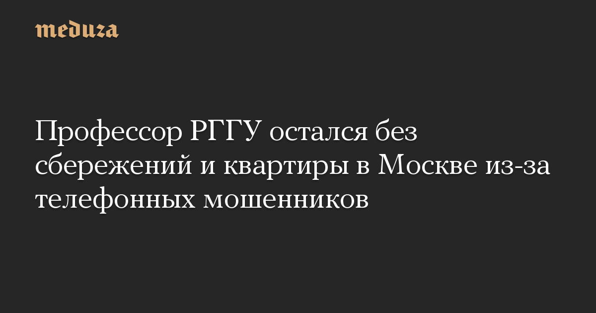 Профессор РГГУ остался без сбережений и квартиры в Москве из-за телефонных мошенников