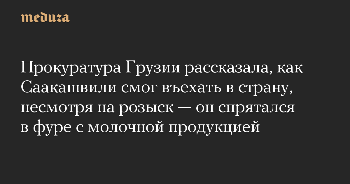 Бывший президент Грузии Михаил Саакашвили вернулся в страну, спрятавшись в грузовике с молочной продукцией. Об этом заявил представитель прокуратуры страны.