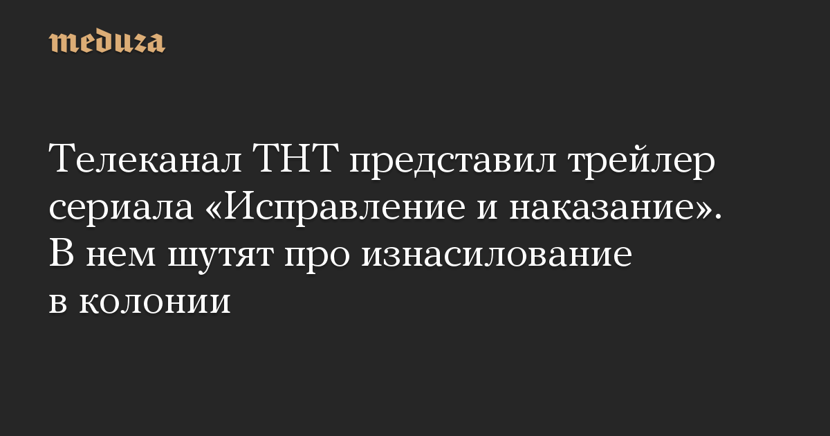 Телеканал ТНТ представил трейлер сериала «Исправление и наказание». В нем шутят про изнасилование в колонии