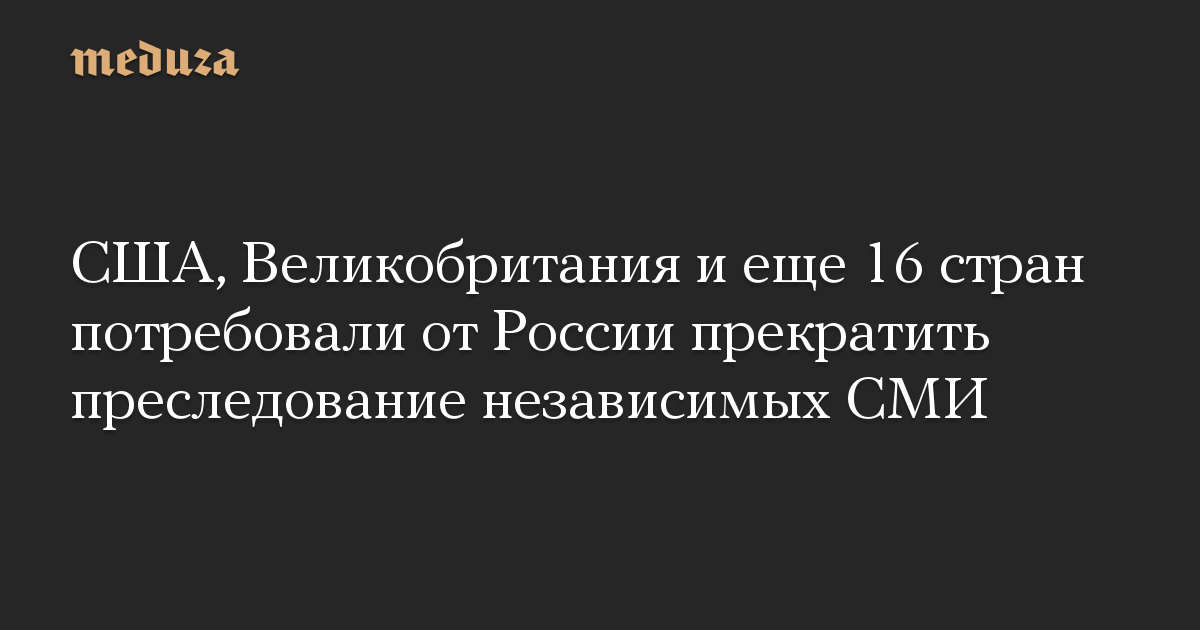 США, Великобритания и еще 16 стран потребовали от России прекратить преследование независимых СМИ