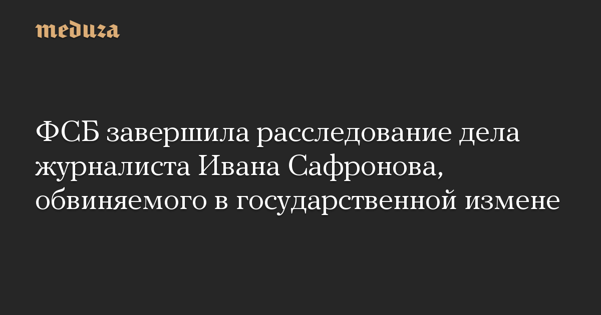 ФСБ завершила следствие по делу о государственной измене, возбужденном в отношении советника главы Роскосмоса, бывшего журналиста газет «Коммерсант» и «Ведомости» Ивана Сафронова.