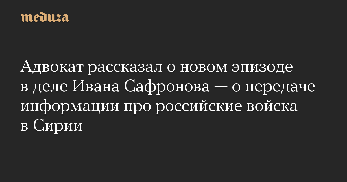 Адвокат рассказал о новом эпизоде в деле Ивана Сафронова — о передаче информации про российские войска в Сирии