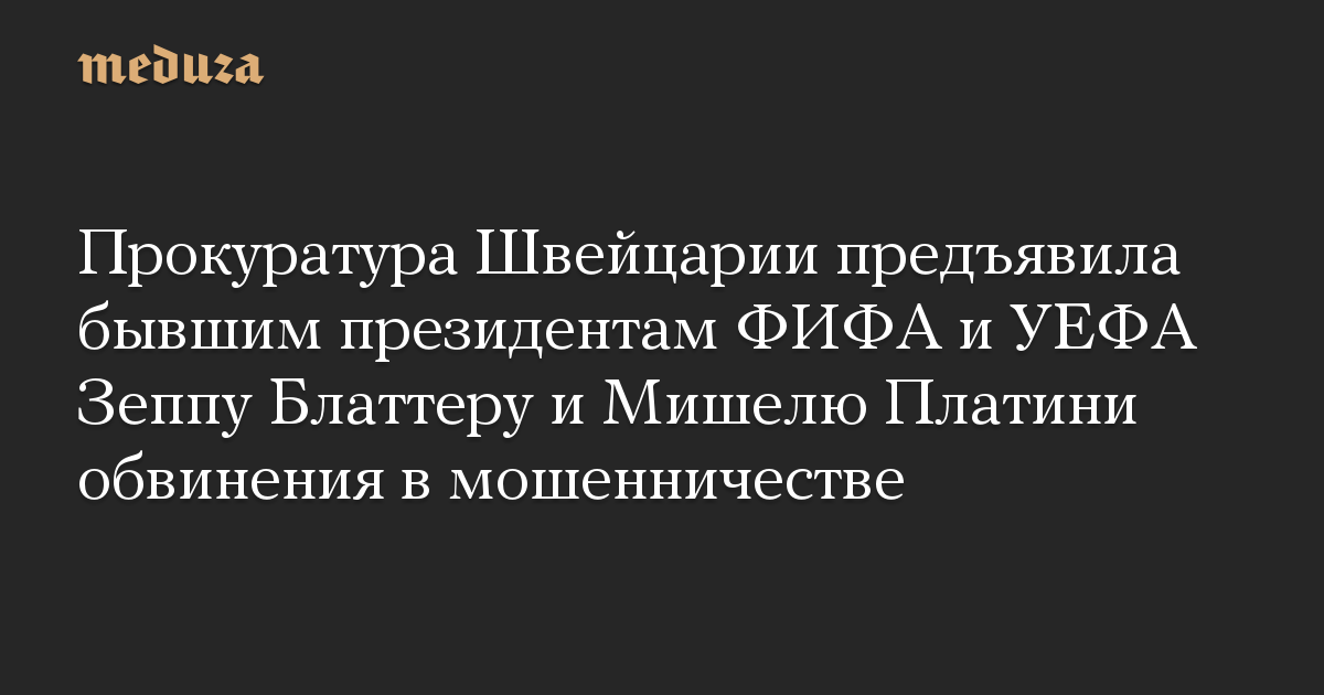 Прокуратура Швейцарии предъявила бывшим президентам ФИФА и УЕФА Зеппу Блаттеру и Мишелю Платини обвинения в мошенничестве