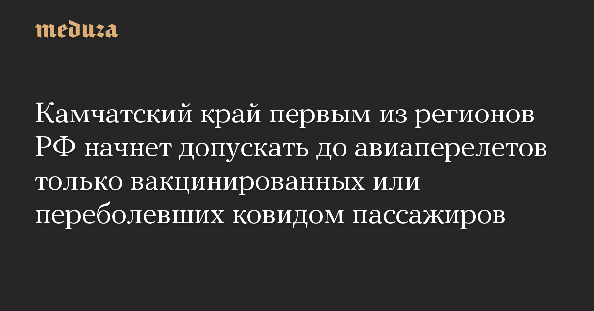 Камчатский край первым из регионов РФ начнет допускать до авиаперелетов только вакцинированных или переболевших ковидом пассажиров