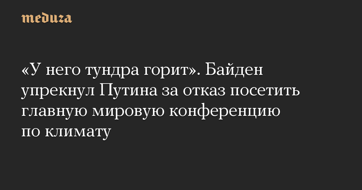 Похожим образом Джо Байден высказался о Владимире Путине. «У него тундра горит. Буквально горит тундра. У него серьезные климатические проблемы. И он молчит о готовности что-либо делать», — сказал президент США.
