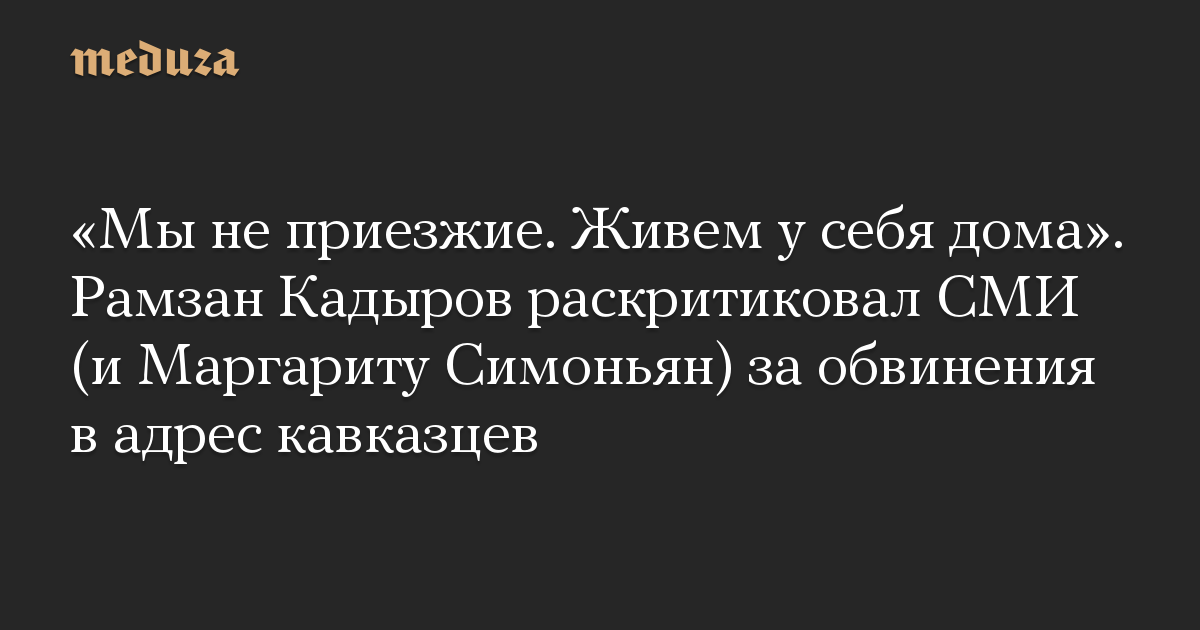 «Мы не приезжие. Живем у себя дома». Рамзан Кадыров раскритиковал СМИ (и Маргариту Симоньян) за обвинения в адрес кавказцев