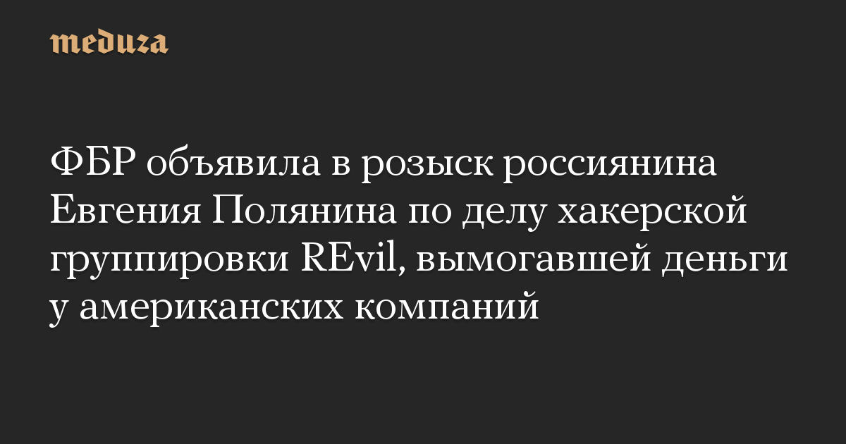 ФБР объявила в розыск россиянина Евгения Полянина по делу хакерской группировки REvil, вымогавшей деньги у американских компаний