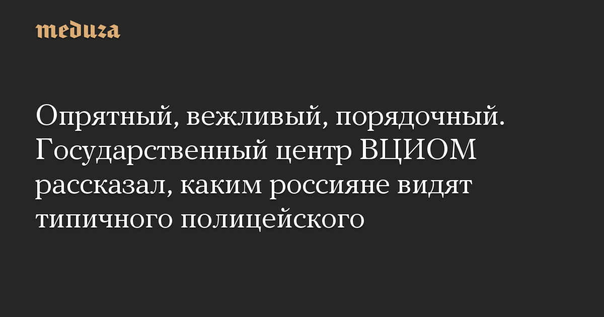 Опрятный, вежливый, порядочный. Государственный центр ВЦИОМ рассказал, каким россияне видят типичного полицейского