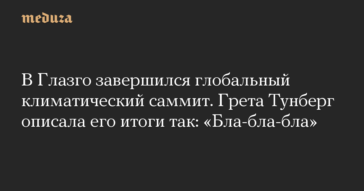 В Глазго завершился глобальный климатический саммит. Грета Тунберг описала его итоги так: «Бла-бла-бла»