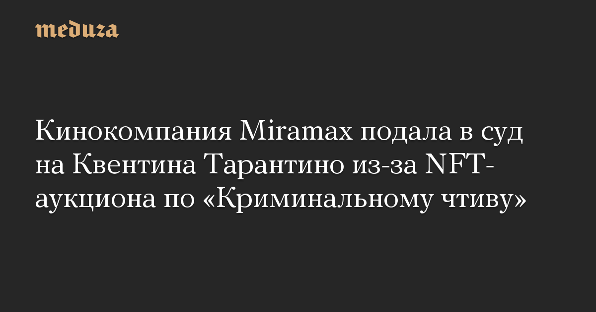 Кинокомпания Miramax подала в суд на Квентина Тарантино из-за NFT-аукциона по «Криминальному чтиву»