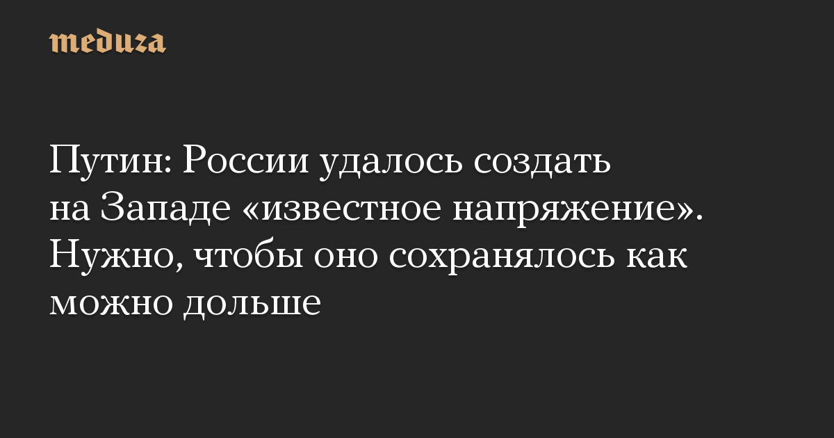 Путин: России удалось создать на Западе «известное напряжение». Нужно, чтобы оно сохранялось как можно дольше