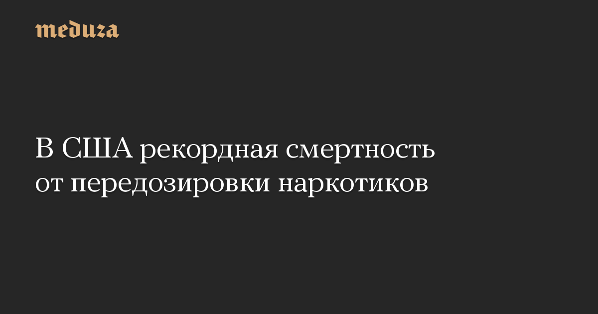 В США зафиксировали самый высокий годовой показатель смертности от передозировки наркотиков, сообщает CNN со ссылкой на предварительные данные Центров по контролю и профилактике заболеваний США (CDC).