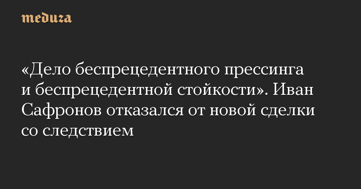«Дело беспрецедентного прессинга и беспрецедентной стойкости». Иван Сафронов отказался от новой сделки со следствием