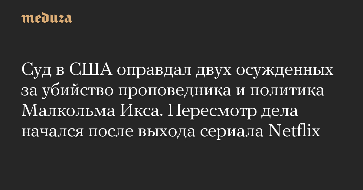 Суд в США оправдал двух осужденных за убийство проповедника и политика Малкольма Икса. Пересмотр дела начался после выхода сериала Netflix