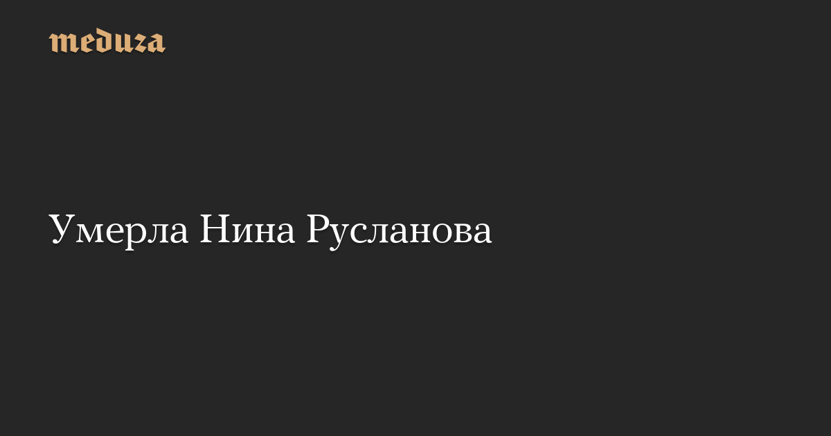Актриса театра и кино Нина Русланова умерла в возрасте 75 лет после продолжительной болезни, сообщает ТАСС со ссылкой на Союз кинематографистов. Ранее о ее смерти сообщил актер Станислав Садальский.