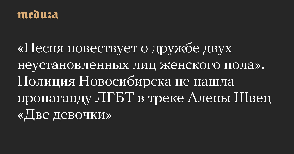 «Песня повествует о дружбе двух неустановленных лиц женского пола». Полиция Новосибирска не нашла пропаганду ЛГБТ в треке Алены Швец «Две девочки»