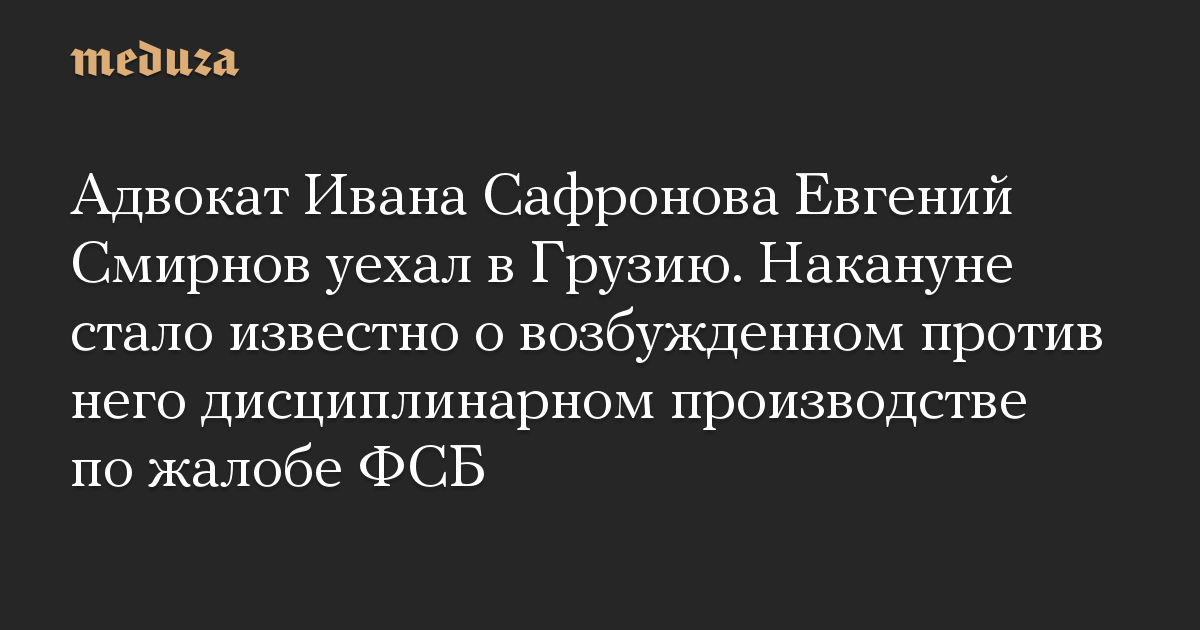 Адвокат Ивана Сафронова Евгений Смирнов уехал в Грузию. Накануне стало известно о возбужденном против него дисциплинарном производстве по жалобе ФСБ