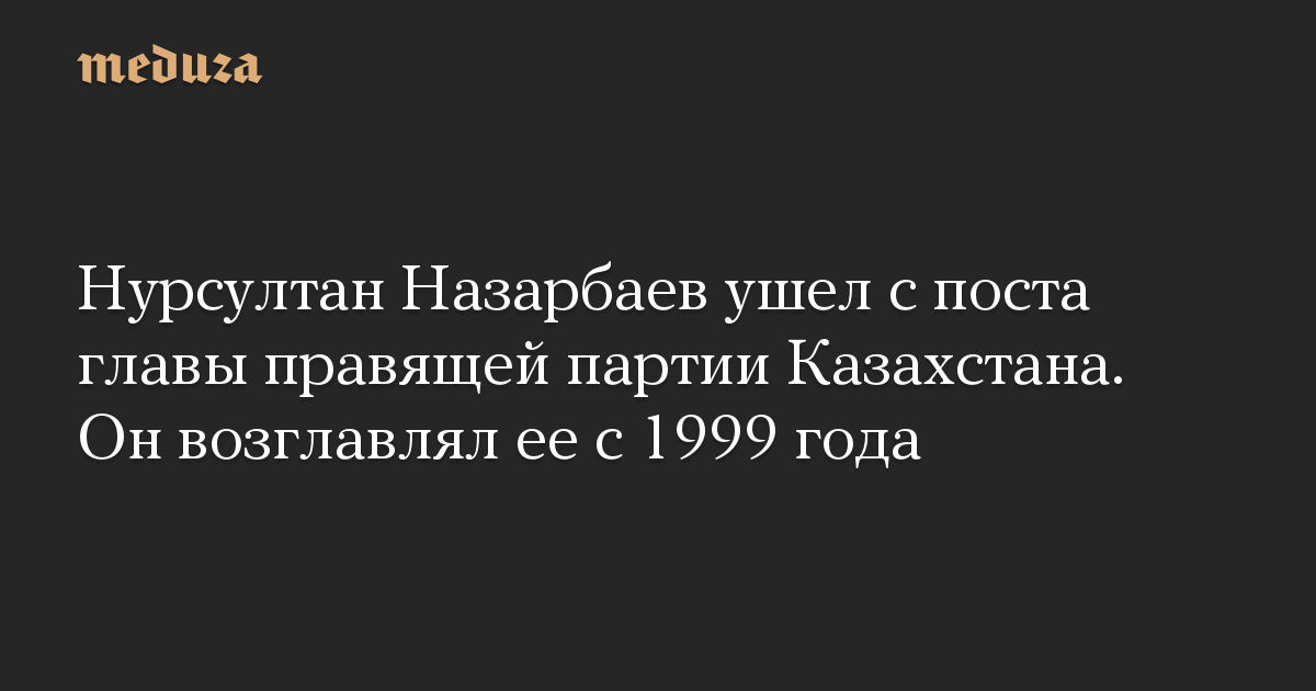 81-летний Назарбаев сообщил на расширенном заседании политического совета партии, что «Нур Отан» должен возглавлять президент Казахстана Касым‑Жомарт Токаев. Нового лидера партии выберет партийный съезд, до этого момента Назарбаев сохранит этот пост.