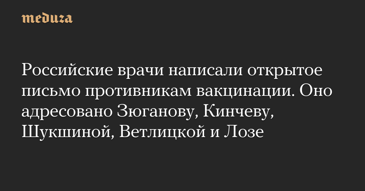 Российские врачи написали открытое письмо противникам вакцинации. Оно адресовано Зюганову, Кинчеву, Шукшиной, Ветлицкой и Лозе