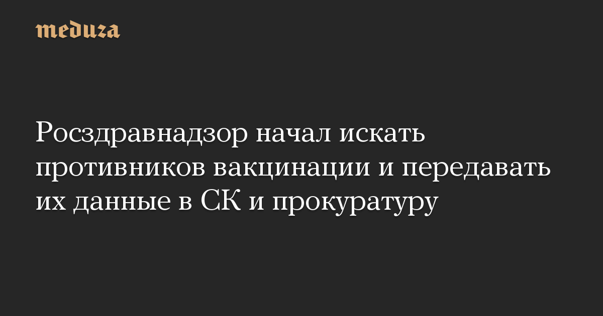 Росздравнадзор начал искать противников вакцинации и передавать их данные в СК и прокуратуру