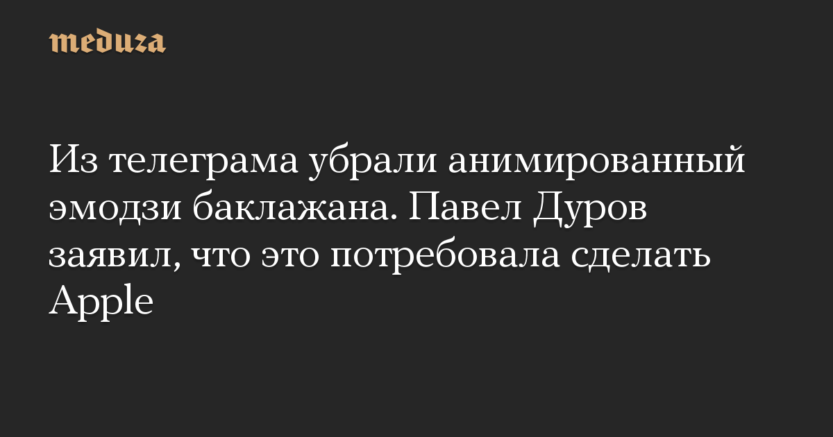 Из телеграма убрали анимированный эмодзи баклажана. Павел Дуров заявил, что это потребовала сделать Apple